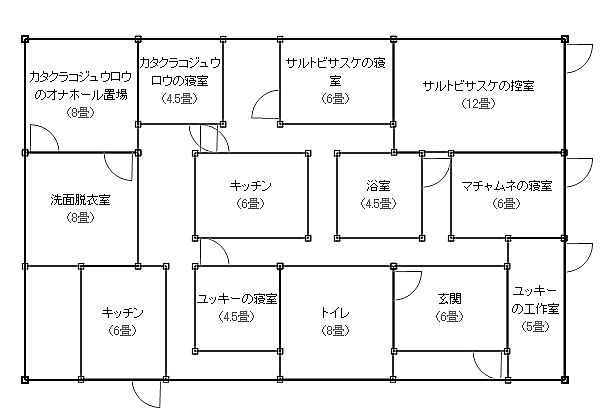 某政小サイト様で拝見した『建築平面図ジェネレーター』 名前を入れるだけで、その人の小部屋を作成してくれるという優れもの! 早速作ってみました 住居人は小十郎・佐助・政宗・幸村 『カタクラコジュウロウのオナホール置き場(6畳)』 広っ!つかオナホールって… で、懲りずに小十郎と佐助オンリーで作ってみたら、 『サルトビのエロゲ相談室(16畳)』って 何を相談するんじゃ? クオリティについてか? ボカシについてか? 画像が小さいから、何がなんだかわからないと思うので、PC持っている方はやってみてください↓ 平面ジェネレーター(PC推奨) 本日、『へるしんぐ』最終巻入手しました!